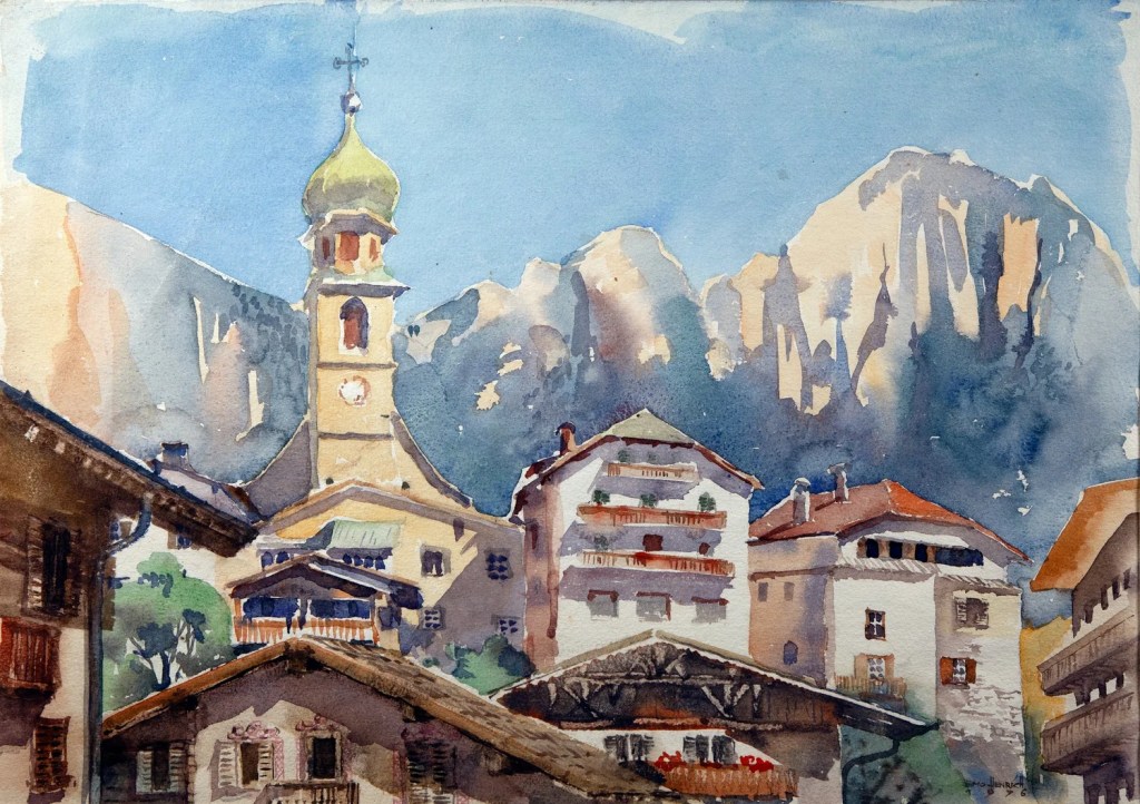 Emo Henrich was an engineer, skier, musician and plein-air painter from Tyrol, Austria. The scenes of Tyrol demonstrate his distinctive impressionistic style and love for the mountains. This exhibition is a celebration of his continued legacy, a testament to a life lived in devotion to beauty, nature, and the art of seeing. His daughter, Mercedes has graciously loaned a selection of prints from her father’s later work. They will be on display throughout the winter and are available for purchase with 10% going to the Winhall Memorial Library.SVP.